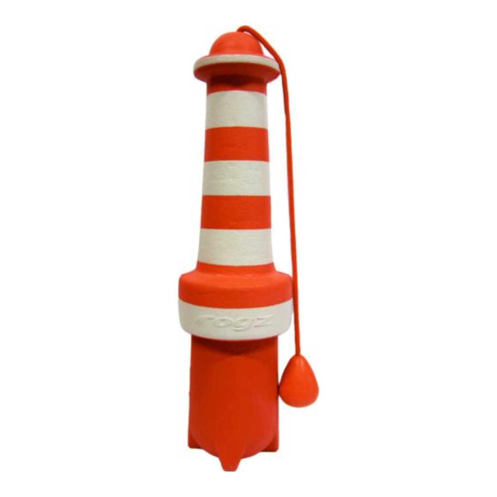 The Rogz Lighthouse has taken the Rogz Mojo to the next level. Not only does the Lighthouse float in the craziest and busiest ocean waves but it stands erect in the water, allowing for even better visibility in the water along with its contrasting red and white stripes. The built-in rope and bobble at the top of the Lighthouse acts as a bungee sling to really get the most distance and height out of your throw. While the Lighthouse is a throw, fetch and float toy, it is not a chew toy and will need to be taken away from your dog after play time. The Rogz Lighthouse is one dog toy that your dog cannot do without this summer.