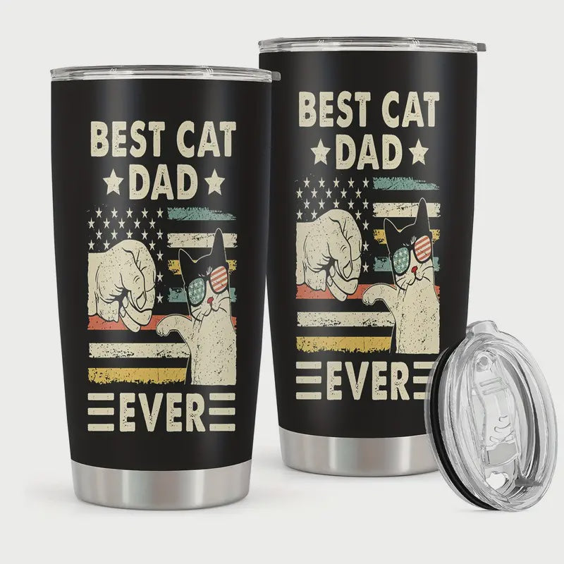 Get ready to bring some personality to your beverage game with the Best Cat Dad Ever Print Tumbler! This 20oz thermal tumbler is perfect for any cat dad, with a fun design and a fist bump to show off your cat parent pride. Stay hydrated in style with this quirky and playful tumbler.