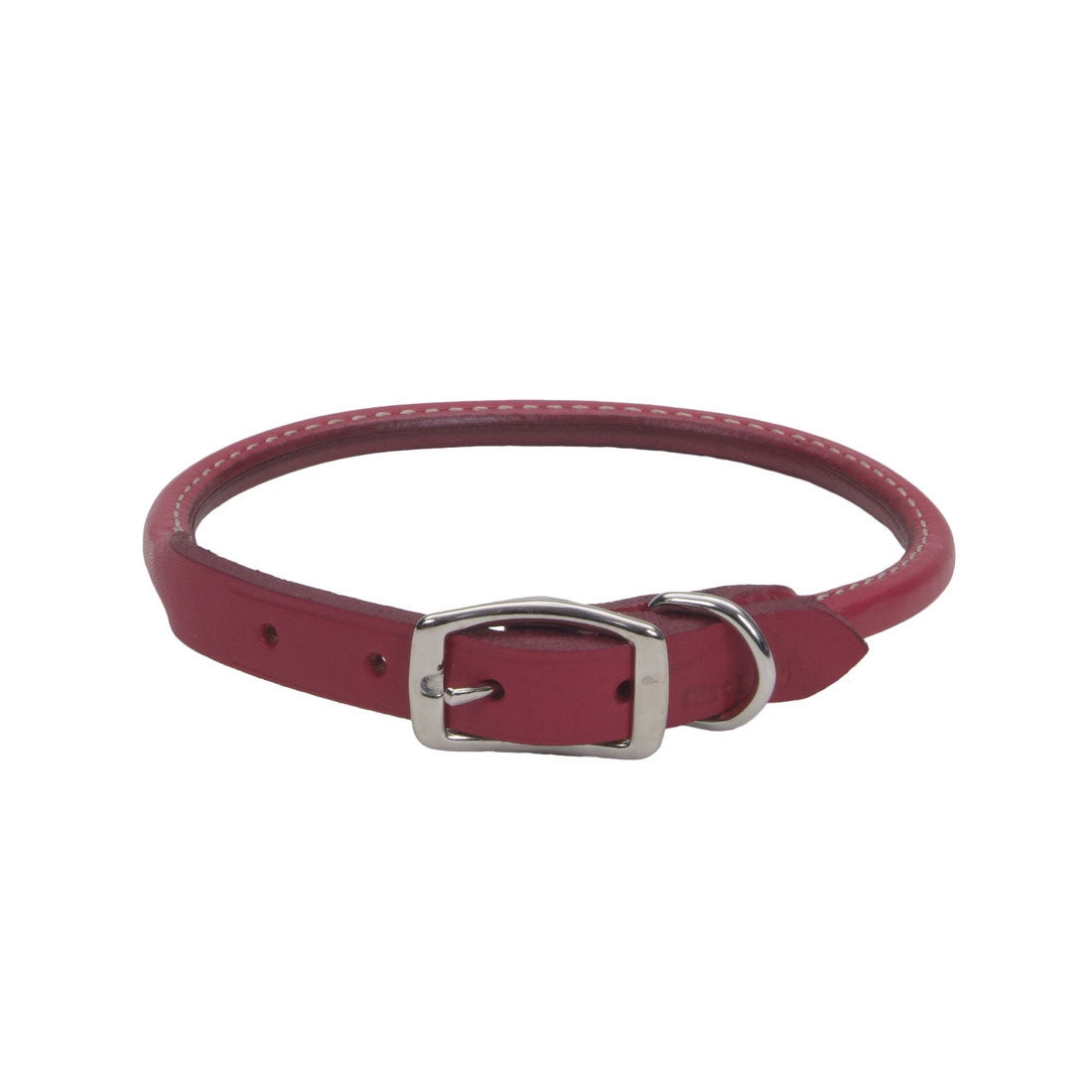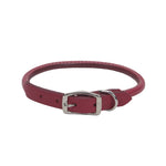 Our handcrafted Circle T Oak Tanned Leather Round Dog Collar offers rich color that becomes even more beautiful with age. Available in 3/8" x 10", 12", 14"; 5/8" x 16"; 3/4" x 18", 20"; and 1" x 22", 24". Made from full-grain leather, this top-quality collar is vegetable tanned using tree bark to achieve excellent leather character, and the hides are dyed for luxurious color. Our Circle T Leather Collar offers a touch of elegance with strength and durability. Great for dogs with long hair or sensitive skin. Will not mat hair.