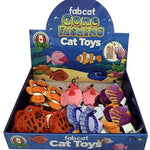 Cats will enjoy these new Fabcat toys. All toys can be interchanged with any Fabcat teaser. All teasers come with a open and close hook and all toys come with a loop to connect. The Gone Fishing PDQ includes Five Tropical Fish -please select which one you would like or no preference.