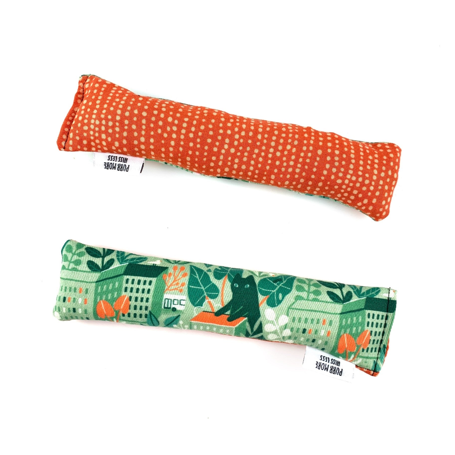 Crisps are fun catnip toys that kitty can toss and carry about. Crips are 1 1/2" wide x 6 to 6 1/2" long (size may vary slightly). Made with cotton, twill, or canvas. They use crinkle or recycled paper inside. Back side has a coordinating print. A display box is available (see other listings). Orders will consist of a variety of cat themed prints (cats, fish, birds, etc). Minimal eco-friendly packaging