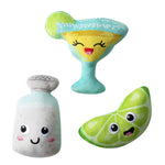 It's 5 o' clock somewhere! Our “On Margarita Time” 3 piece mini plush toy set is perfect for the pup that likes to play all day. With each toy stuffed with fluff and a loud squeaker, this trio will feel like happy hour at any hour.