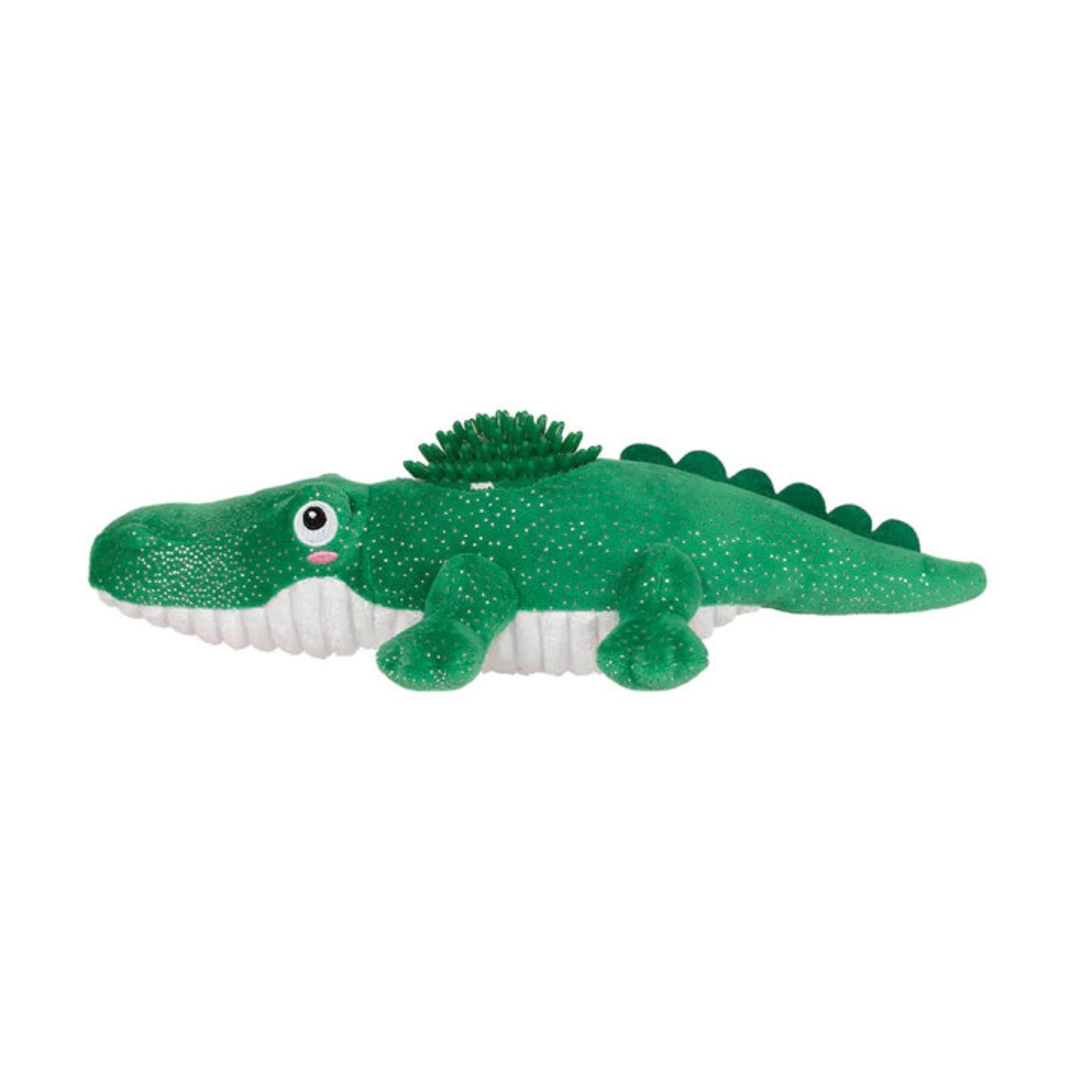 Make it snappy! Our “Ready to Croc” plush toy is perfect for playtime, anytime. Made with a super loud squeaker, crazy crinkle paper, and a unique spiky TPR ball exterior, this toy was made to make teeth cleaning fun and improve oral health. Designed with flexible bristles and ridges that clean teeth and massage gums, your pup won't be able to scale back all the fun.