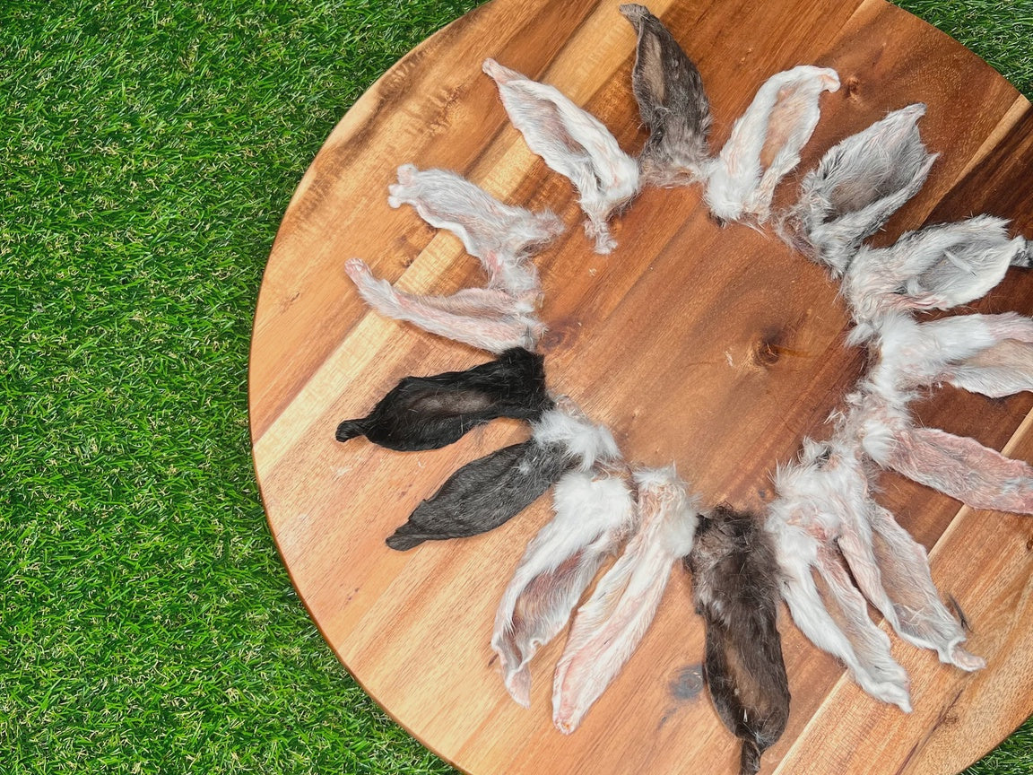 Introducing our Single Ingredient Dehydrated Rabbit Ear, a delightful and lightweight snack suitable for dogs of all sizes. Made from 100% natural rabbit ears, this treat is a guilt-free indulgence for your furry friend. Each ear is carefully prepared and dehydrated to preserve its authentic flavor and nutritional value, ensuring that every bite is a taste of pure goodness.