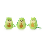 Bring out your cat’s playful side with our Avocatos plush cat toys. This trio of plush creatures attached by a string will keep all of those cool cats and kittens entertained for hours. The crinkle sounds will instantly spark curiosity and the premium catnip will keep your cat coming back for more.