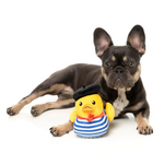Oooh la la! Hold onto your quackssants because the dashing French duck, Timotheé Chalaquack has just landed! This plush casanova is dressed to the nines in a beret and moustache, ready to add a touch of Parisian flair to your fuzzy friend’s playtime. The pawfect playmate for dogs who loves a bit of fun and sophistication. Unleash your pup’s inner ‘quack oui oui, mon ami!’ with Timotheé Chalaquack today!