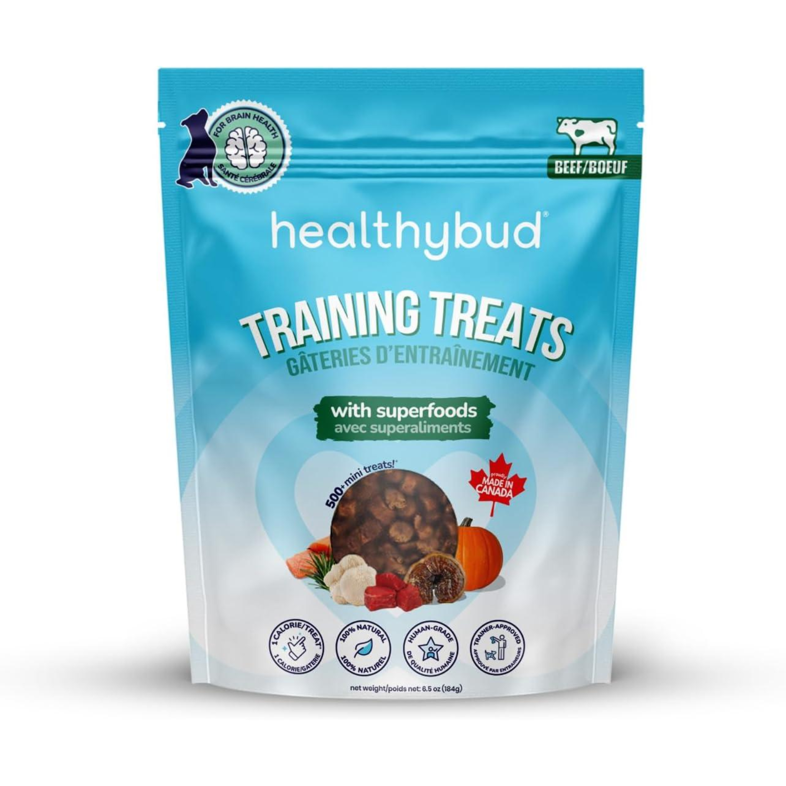 Only 1 calorie each and up to 500 per bag, Healthybud's award-winning training treats let you reward often without worrying about your dog's waistline! Made with brain-boosting superfoods like Salmon Oil and Lion’s Mane & Reishi mushrooms, these best-selling treats support focus and obedience while keeping training fun.