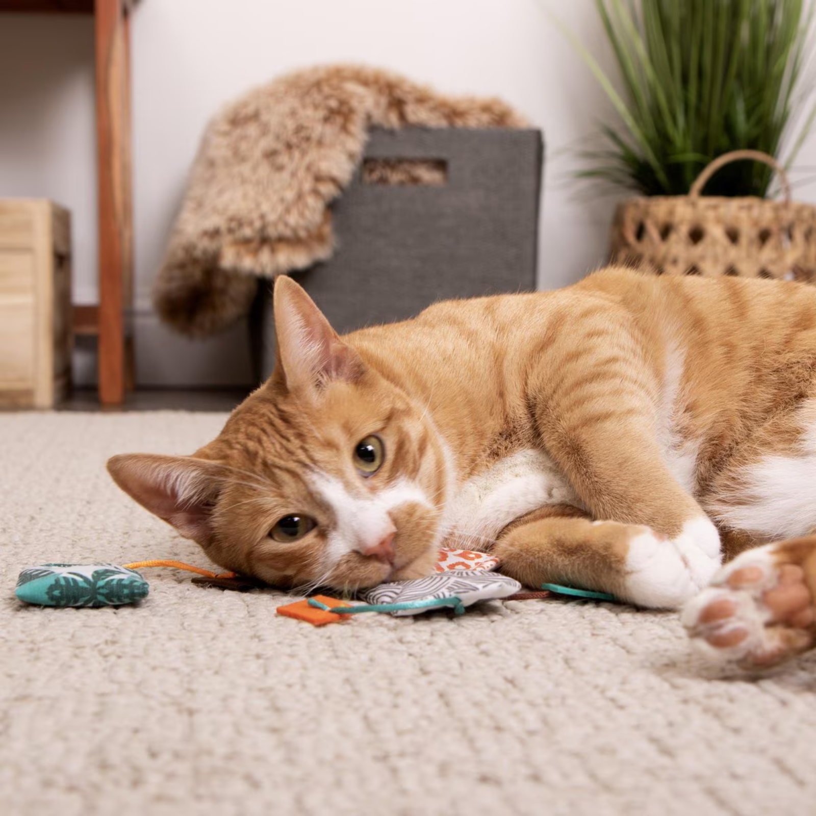 Set of 3 release your cat’s inner instincts with lightweight floppy toy teabags that are 100% filled with HappyNip catnip and silvervine. HappyNip is our proprietary blend of pure natural catnip and silvervine, an ideal alternative for finicky felines who need a little extra excitement. Tricky Tea sparks the fun and gives your cat a satisfying hunt with safer and kinder “prey."