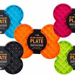 SloDog is a unique approach to slow-feeding and anti-anxiety. By changing from a bowl to a plate, a much larger surface area becomes available to the feeding dog. All the food is in plain sight and does not have to be chased, thus avoiding frustration.