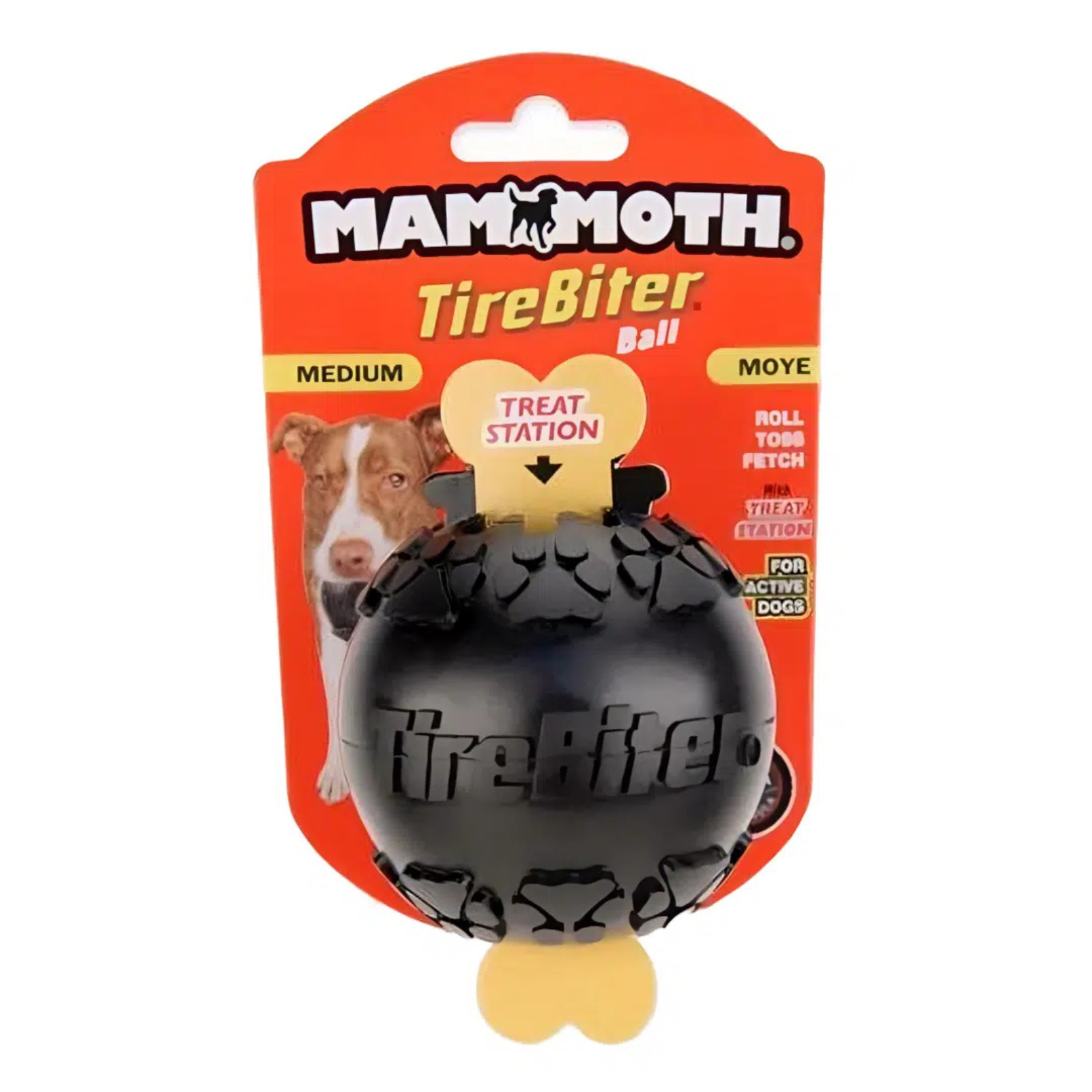 The Tirebiter Ball by Mammoth is a 3″ heavy-duty chew toy that also functions as a treat dispenser. Standard Mammoth Tirebiter material that customers know and love!