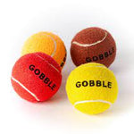Set of 4 Thanksgiving-themed dog tennis balls. Give your pet busy on Thanksgiving with these festive tennis balls. Comes in 4 different colors in Thanksgiving-themed colors with GOBBLE written on them.