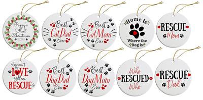 These wonderful and festive ceramic round ornaments are Printed in the USA. These light weight yet durable ornaments measure 2-1/2 in diameter and come with an elegant golden string.