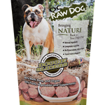 For maximum freshness we recommend you keep the food frozen until ready to serve.  Thaw in the refrigerator, never in the microwave, once thawed the food will be good for 2-3 days in the refrigerator.  This product is made from raw foods which may contain bacteria harmful to humans.  We highly recommend that you store raw food separate from ready-to-eat foods and always wash your hands, bowls, and handling surfaces, like counters or cutting boards, in hot soapy water after use.