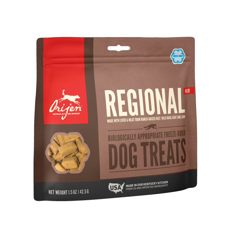 ORIJEN Freeze-Dried Treats are crafted with the same quality ingredients that make up our trusted foods. Regional Red treats are made from 100% raw animal ingredients from ranch-raised beef, grass-fed lamb, wild boar, and goat, for a protein-packed reward that is as healthy as it is delicious