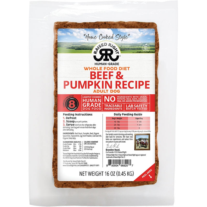 Raised Right can proudly make the human-grade pet food claim as every ingredient in our food has passed the same standards necessary for human consumption and all of their food is gently cooked in a human-grade facility. Low temp cooking meets the USDA pathogen kill-step, while maintaining high levels of moisture and nutritional integrity.