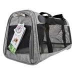 The SHERPA Element Carrier Gray features locking zippers with top and side entry, mesh panels for ventilation, and a machine washable liner. This airline approved carrier is also a part of Sherpa's exclusive Guaranteed On-Board program. All carriers come with an easy to use luggage strap.