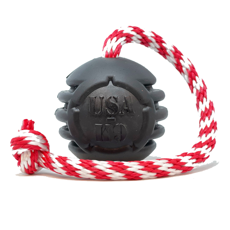 USA-K9 MAGNUM BLACK STARS AND STRIPES ULTRA-DURABLE RUBBER CHEW TOY, REWARD TOY, TUG TOY, AND RETRIEVING TOY - BLACK