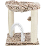 The structure is covered in a neutral, beige-toned plush fabric that easily fits into most home decors while providing a soft surface for your cat to enjoy.