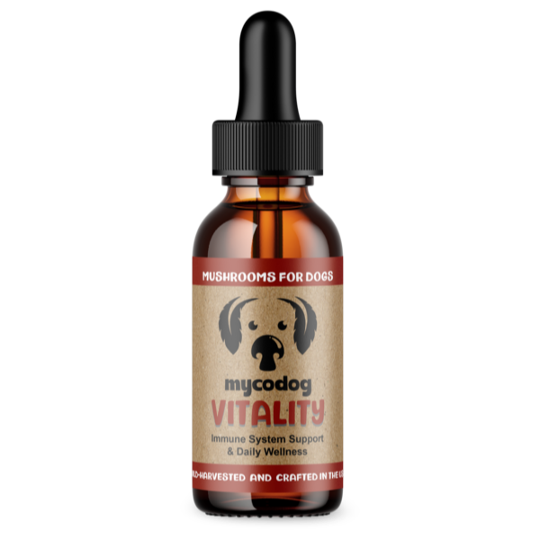 Vitality is a blend of naturally grown mushroom extract. This formula was designed to help support dogs dealing with cancer, autoimmune disease, liver issues and respiratory issues. A proprietary spagyric dual extraction of the fruiting body of Turkey Tail, Reishi, Shiitake, Maitake, Chaga, Artist Conk and Red Belted Conk, with Astragalus Root and Ashwagandha, and trace minerals, preserved in organic vegetable glycerin.