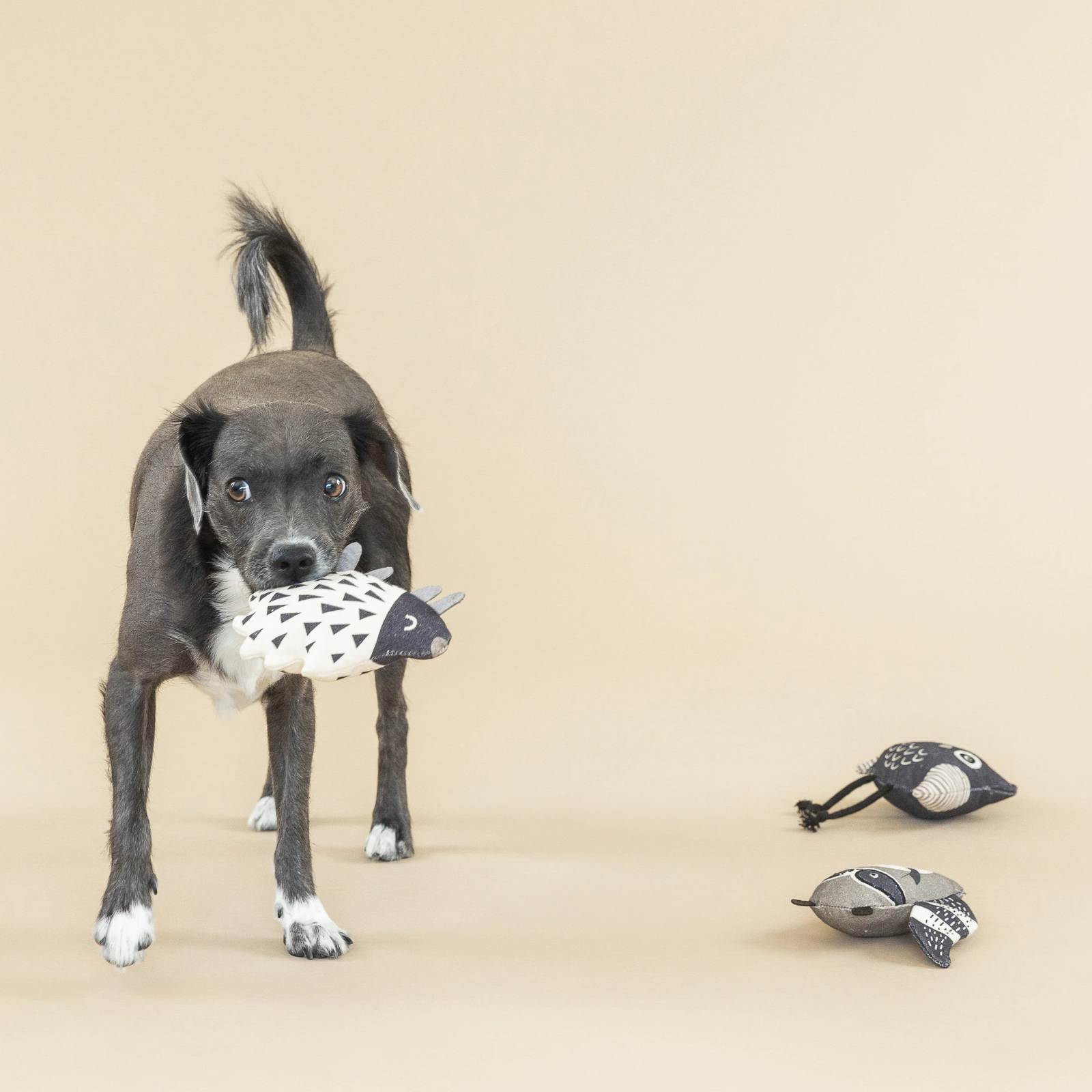 Our “Wild Ones” 3 piece mini toy set is the perfect playdate for your pup. Featuring durable cotton canvas, a super loud squeaker, crazy crinkle paper, tuggable rope for the owl's legs, and printed with water based and non-toxic ink, these toys were designed with interactive play in mind and a look that complements modern home décor. Whether you squeak, crinkle, or toss them, your pup will love these wild party animals.