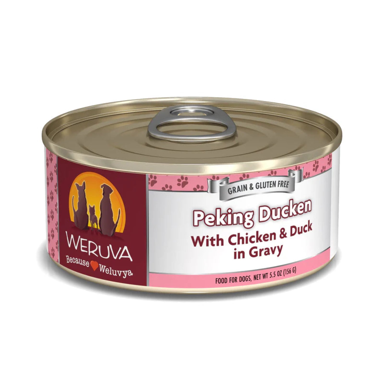 Get your ducks in a row and press your lucken with some Peking Ducken. Chunks of duck and pumpkin and chicken free of added antibiotics and hormones, and also cage free. Your dog might enjoy it so much that they will "quack" you up by licking the bowl clean!